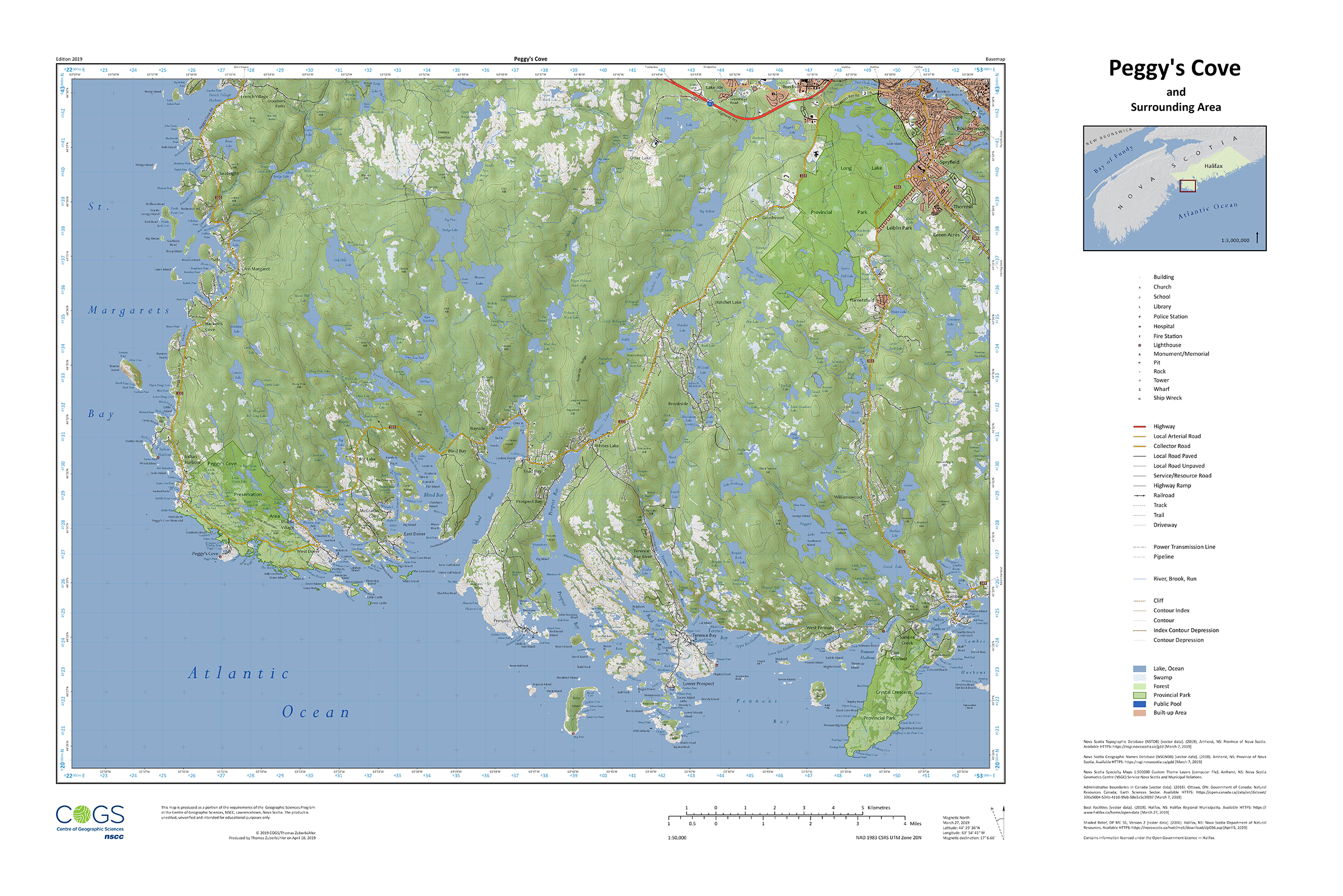 There were very little requirements to create this topographic map. Only the paper format and to use a hillshade was explicitly instructed. Every student in the class was assigned to a study area within Nova Scotia. I was lucky to get Peggy's Cove and surrounding area. At least, that's what I thought at first until I started to label the coves and islands along the coast. ;)